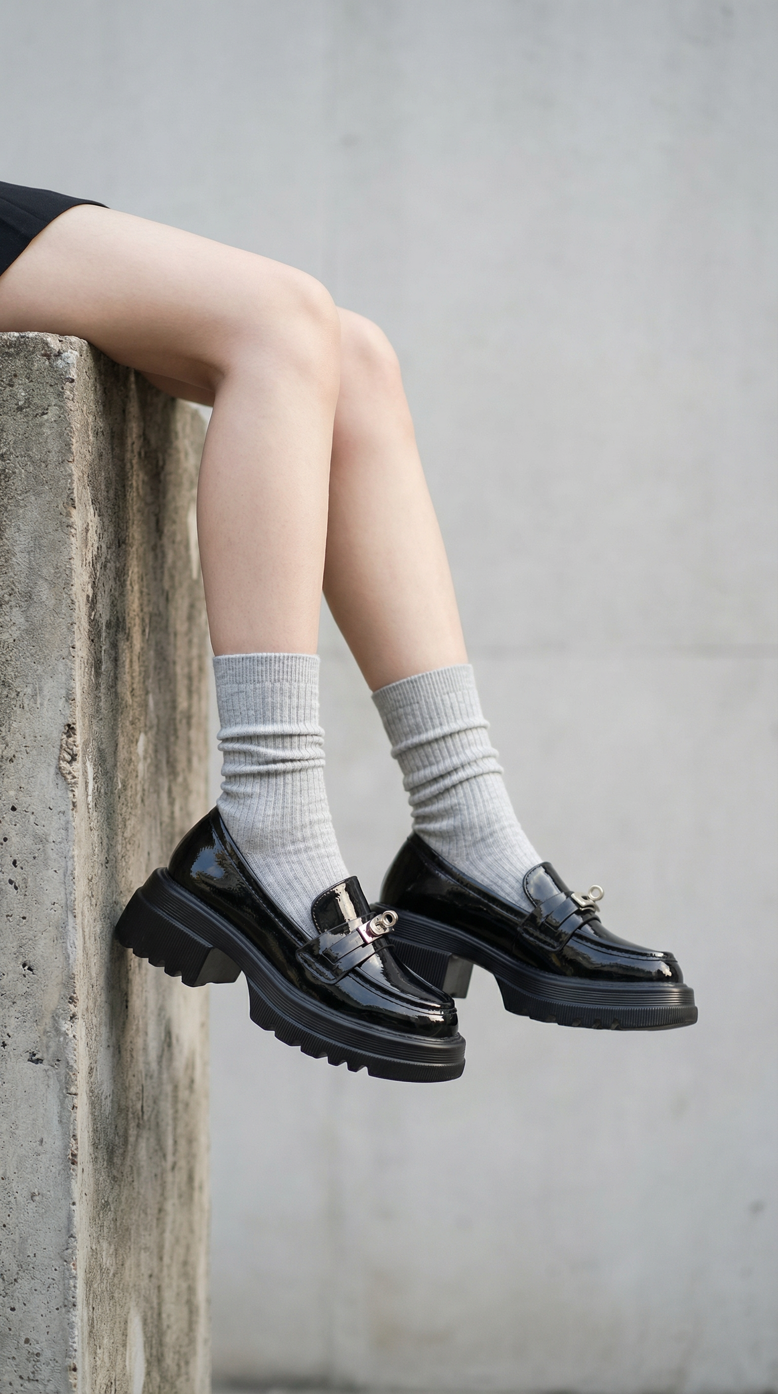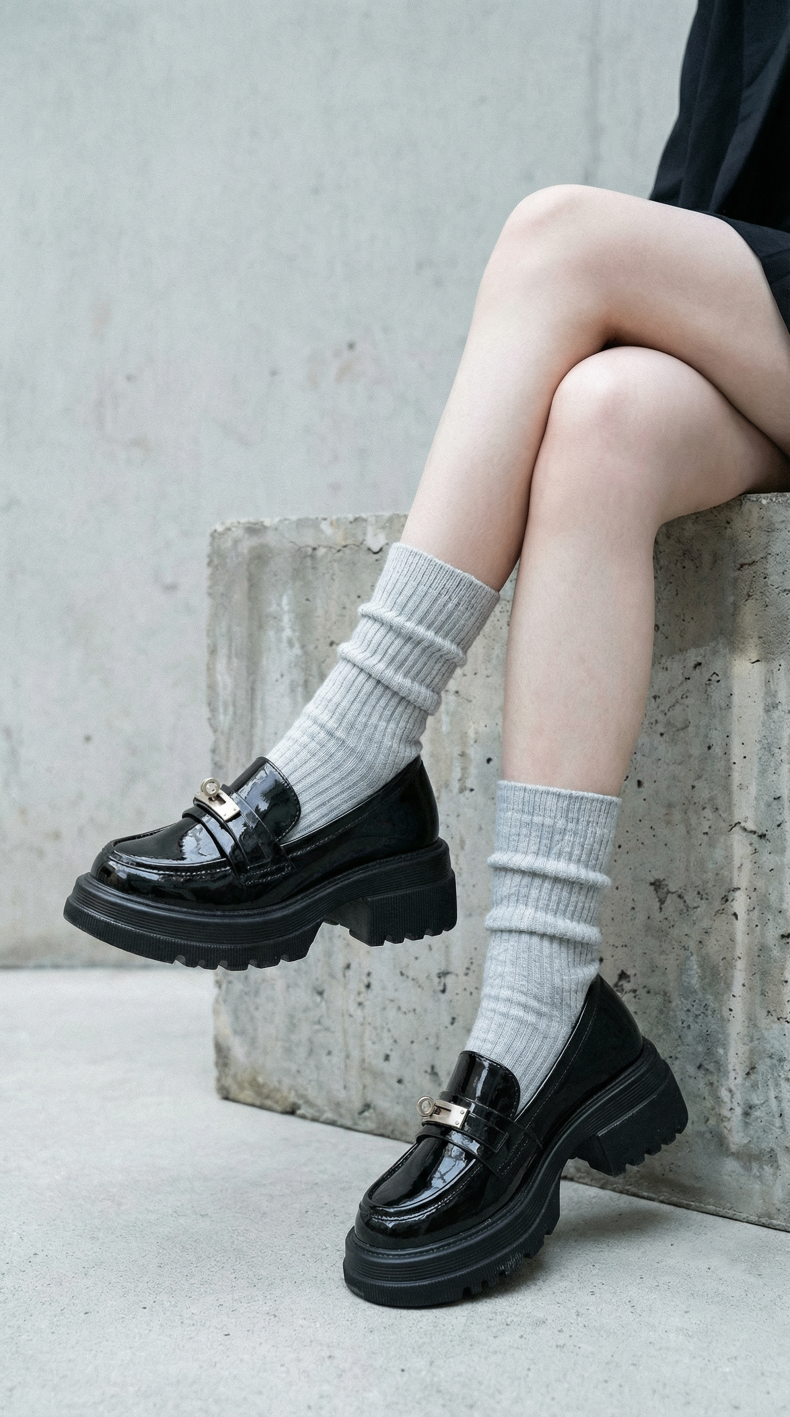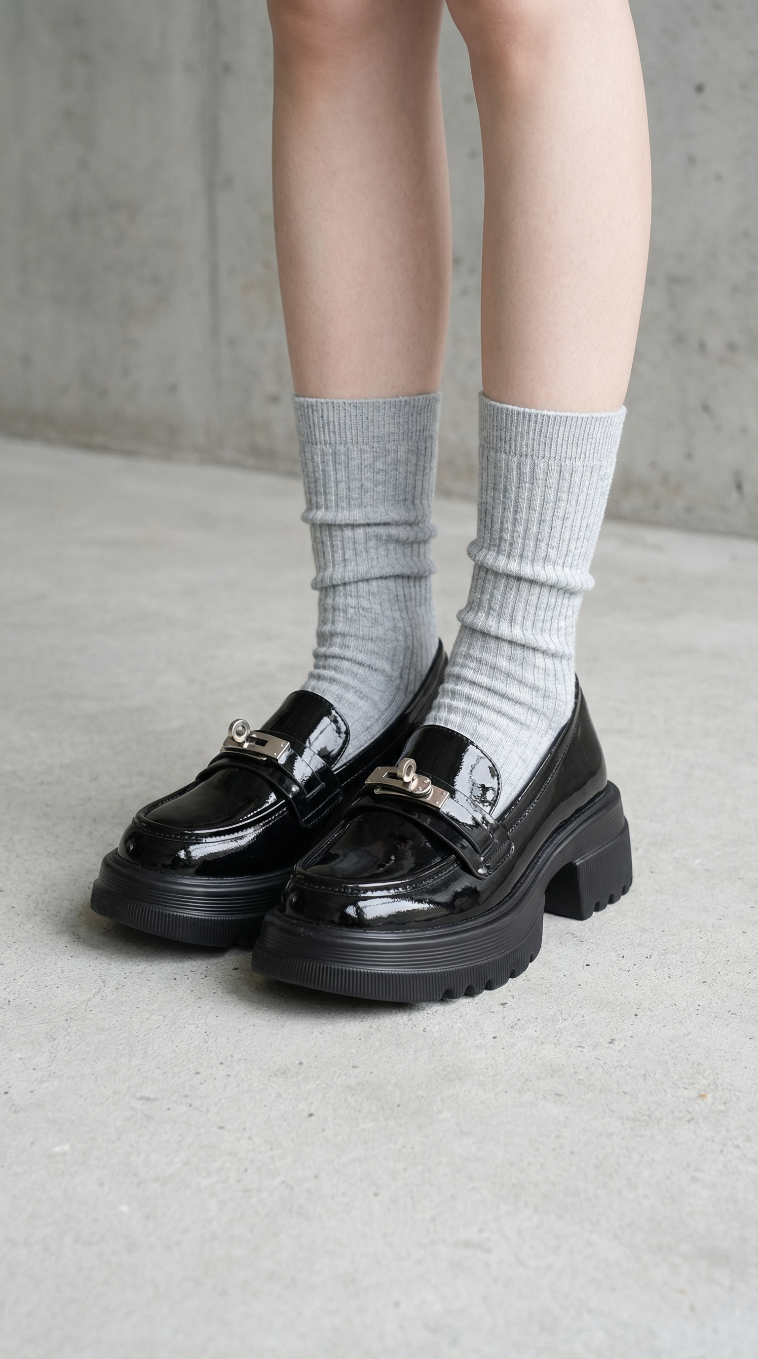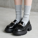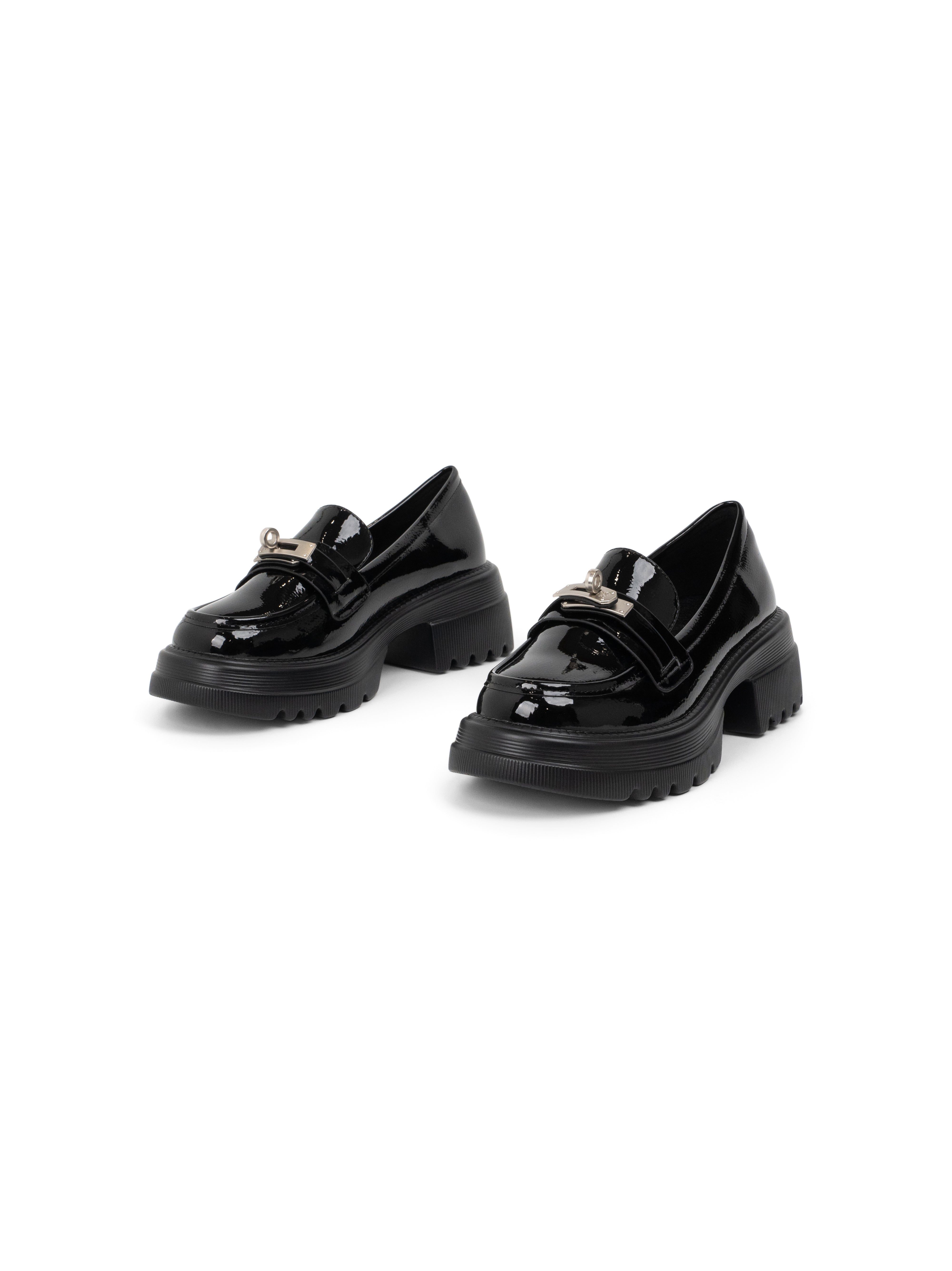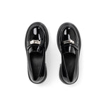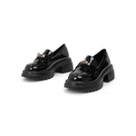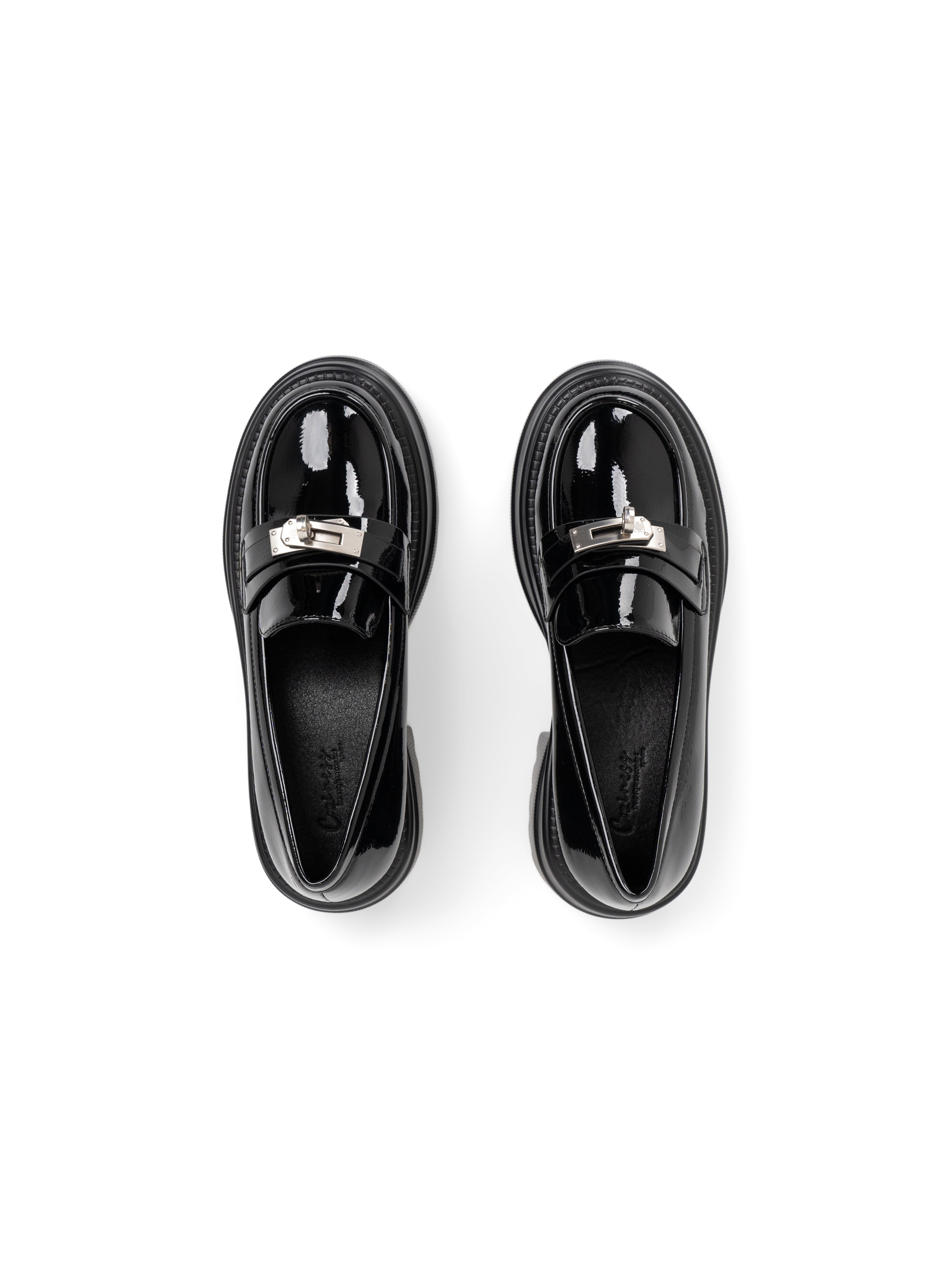 The Corse reimagines the classic collegiate loafer through a bold, contemporary lens. Set on a substantial 5.5cm platform, it provides a dramatic elevation while maintaining ergonomic balance. The polished metal monogram adds a touch of architectural hardware to the sleek PU finish, making it the definitive footwear for power dressing.