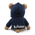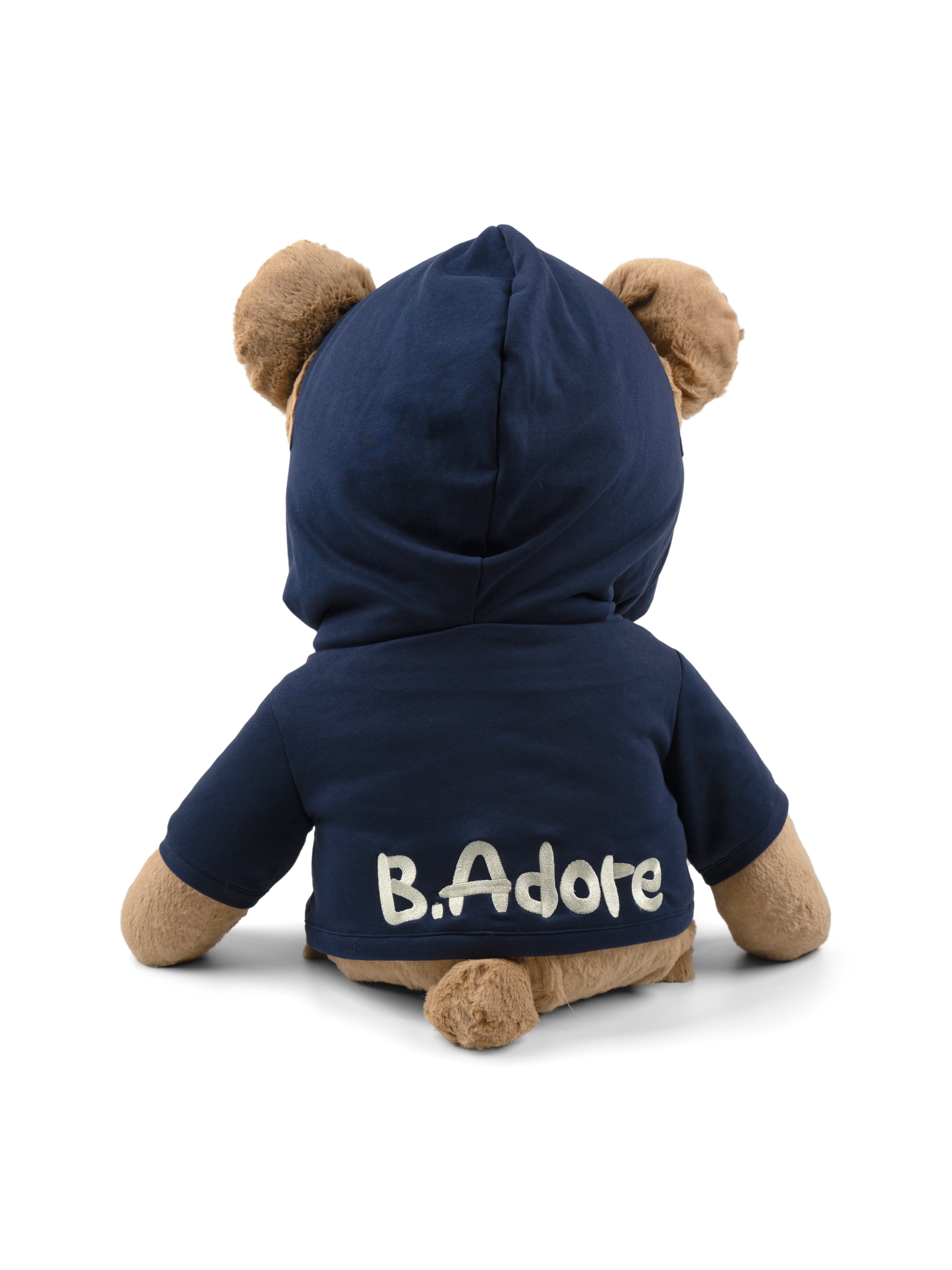 - The rear view of the hoodie features the name "B. Adore."