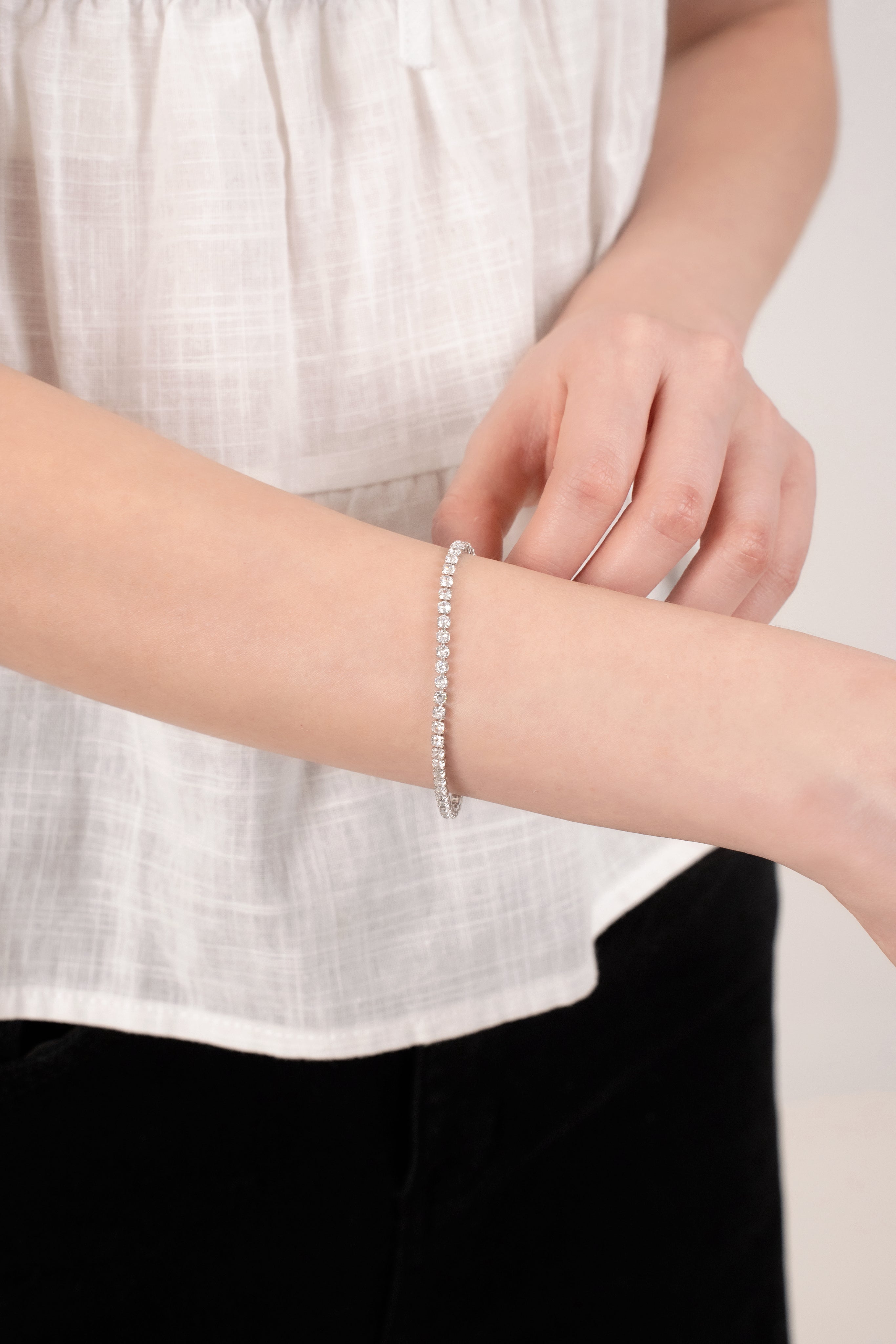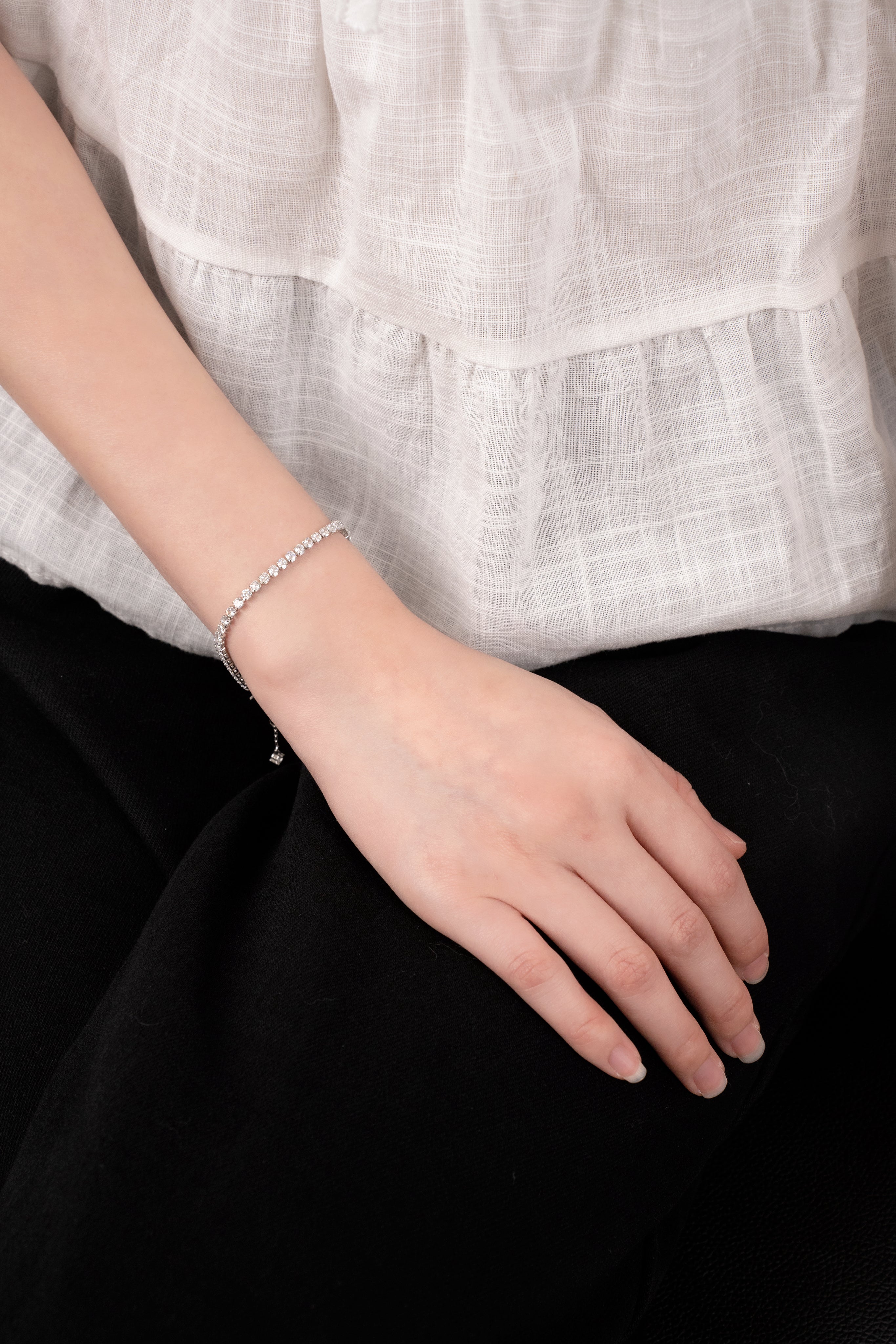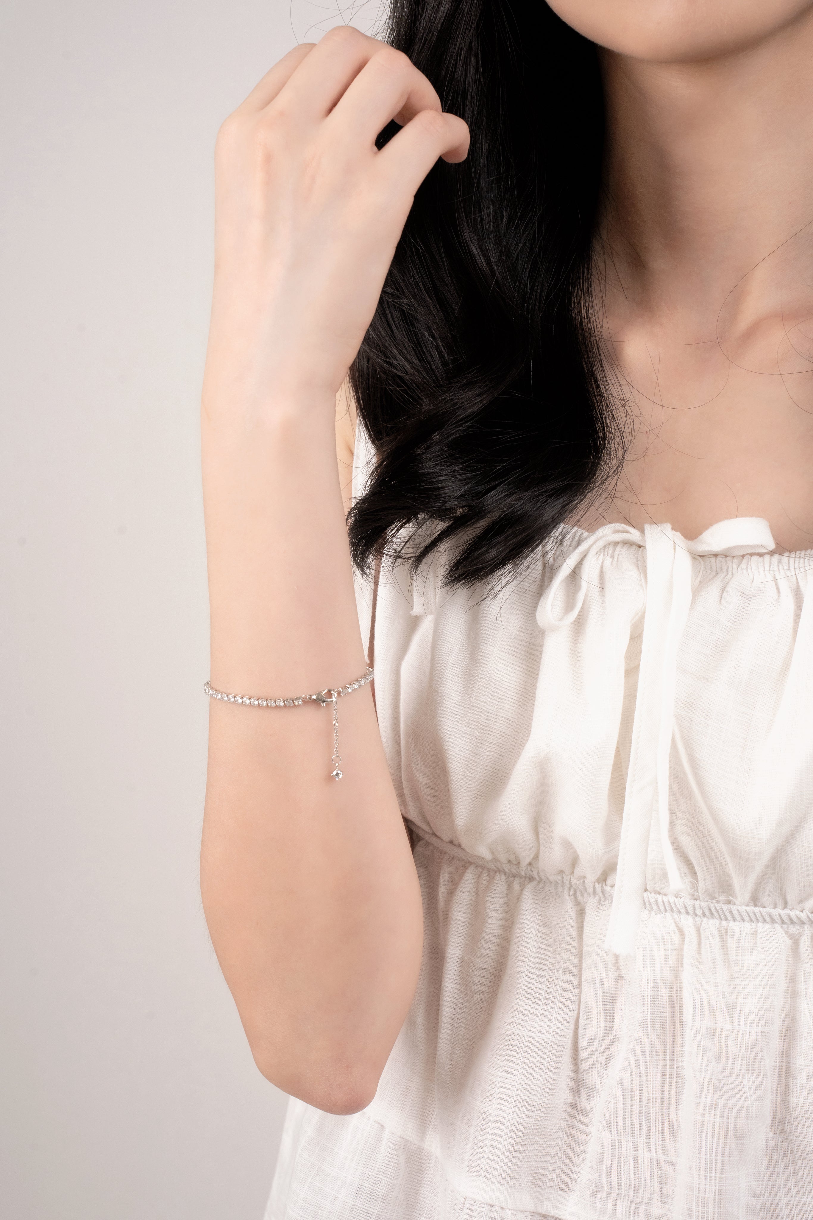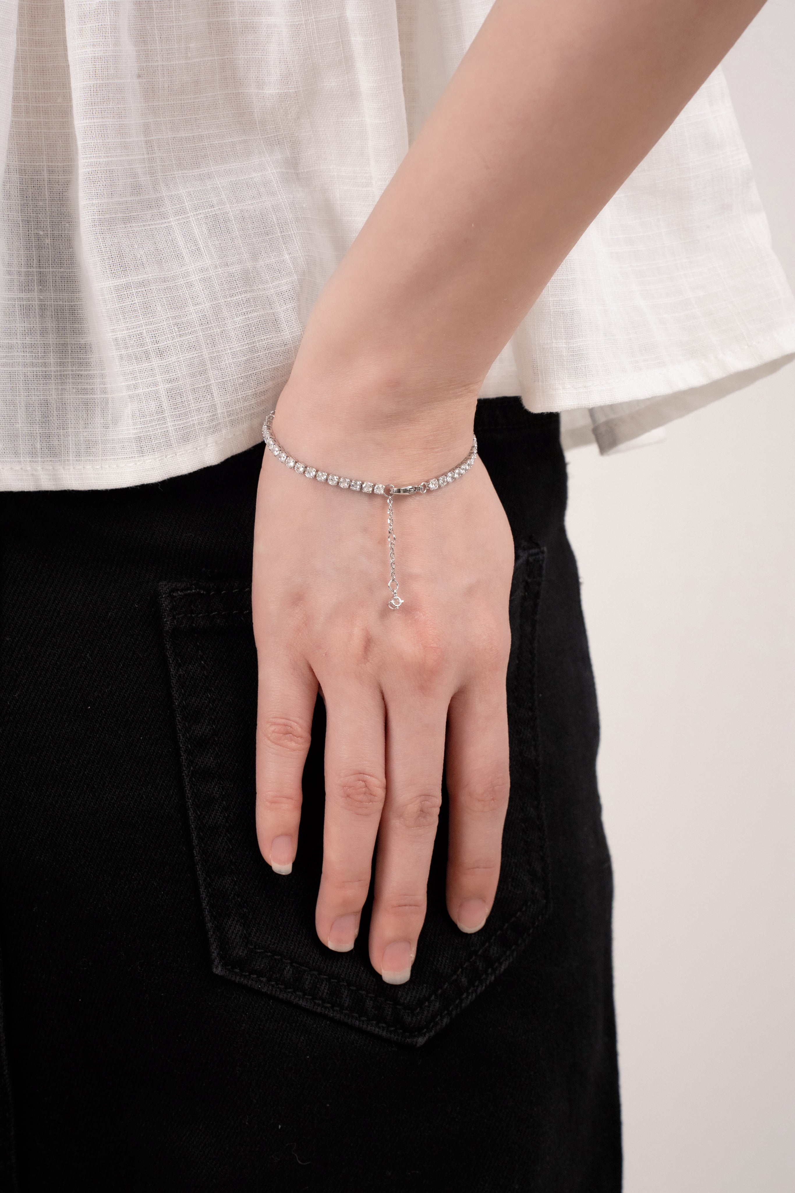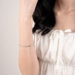 Delicate, refined, and effortlessly chic, AURA GRACE is the bracelet that speaks in whispers of elegance. Designed with a row of radiant stones, it catches the light with every movement, creating a subtle yet captivating sparkle.