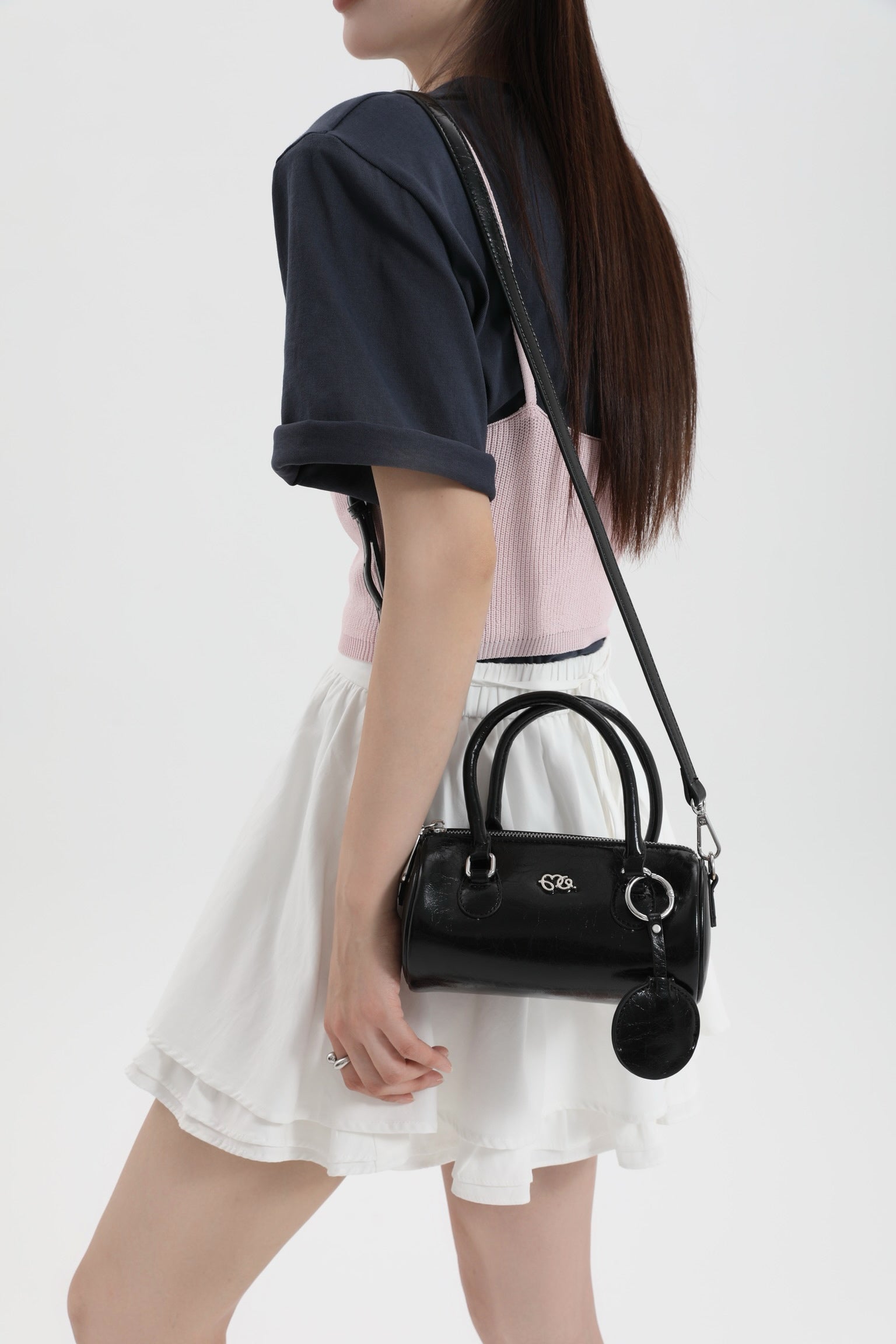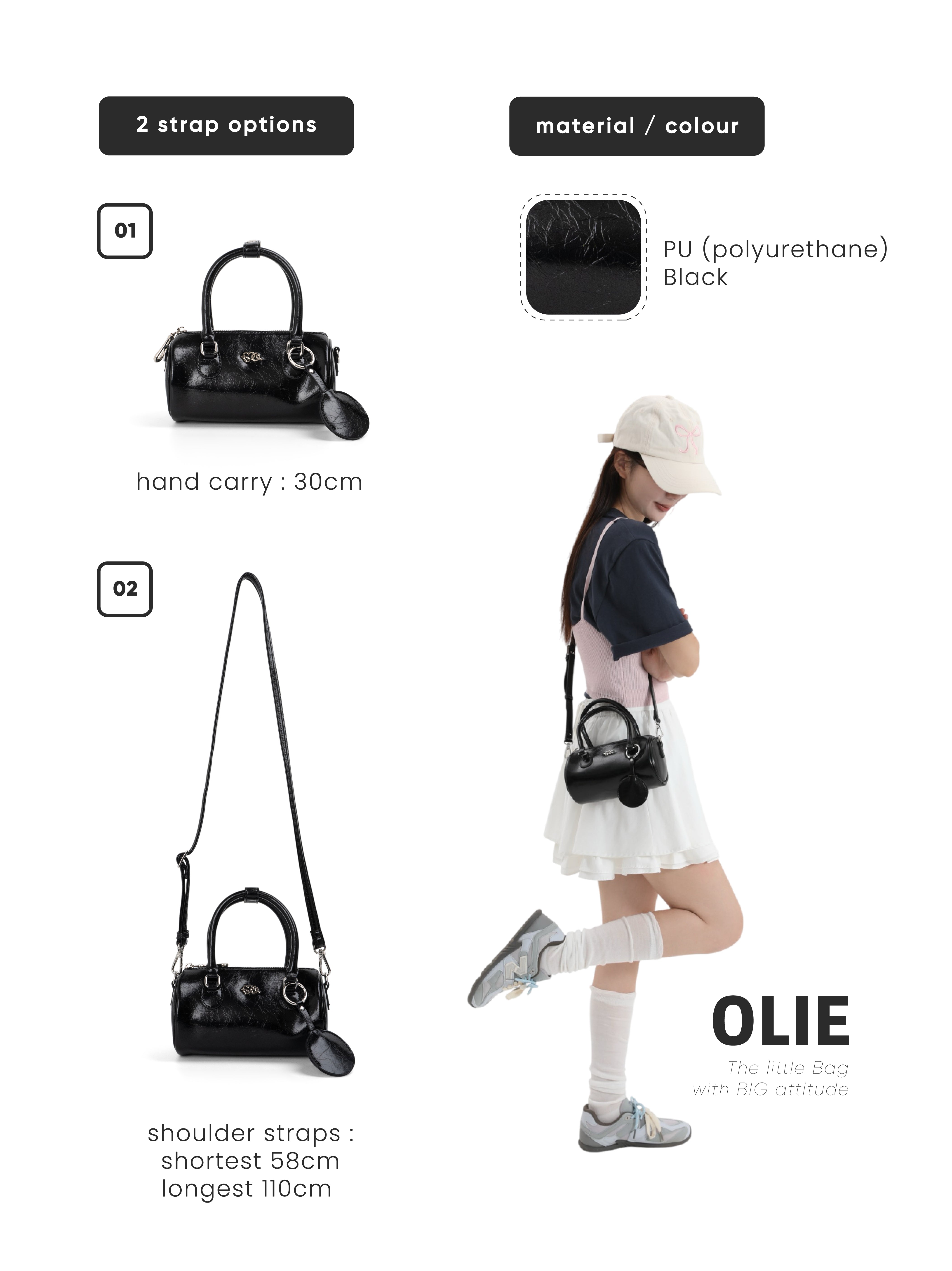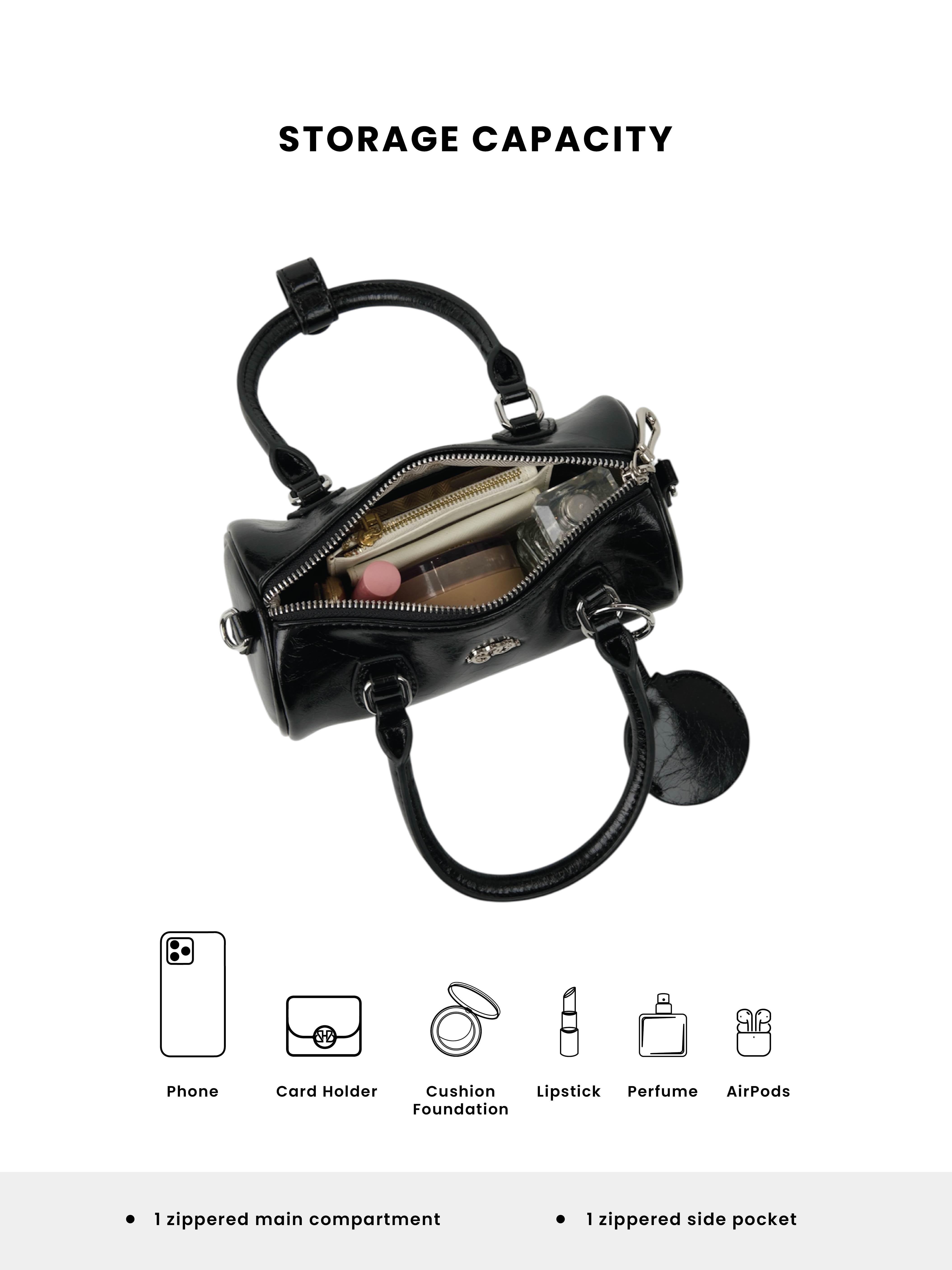OLIE is the bag that turns minimal into unforgettable. With its sleek, glossy finish and bold cylinder shape, it brings a cool, edgy vibe to any outfit. The compact size is perfect for your essentials, while the sturdy top handles and detachable keychain add bonus points for style. Whether you’re pairing it with sporty-casual looks or elevating a streetwear fit, OLIE makes sure you carry confidence and attitude on your arm.